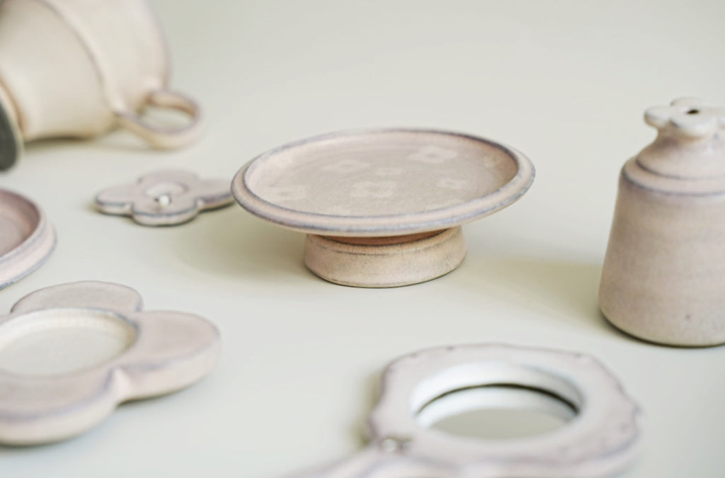 灰粉釉九花甜點座